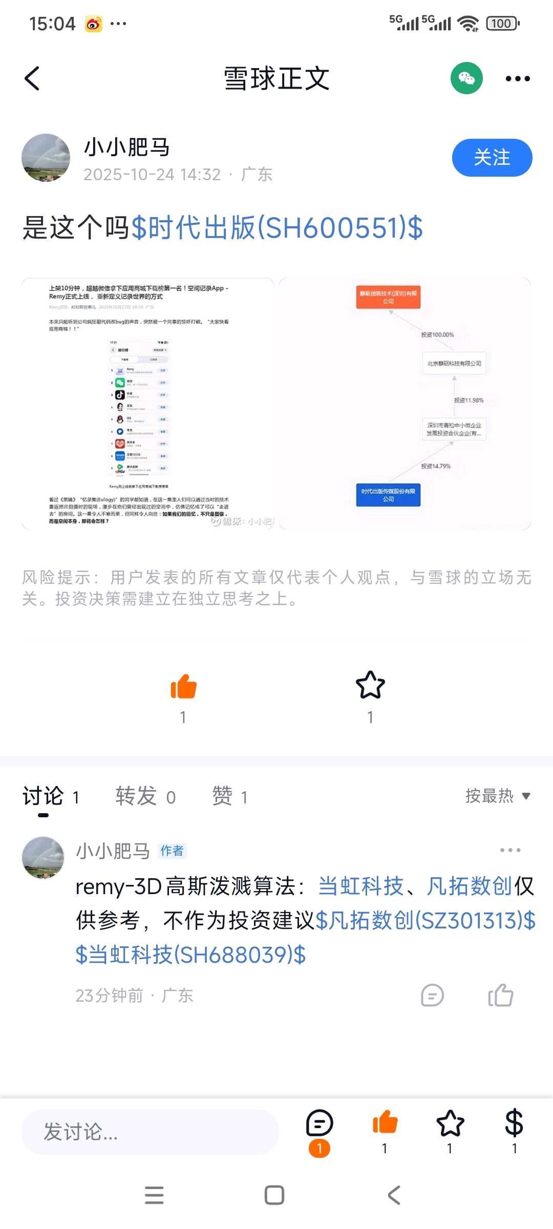 一个新东西,空间应用app—remy,应该是大模型方面的,主板有时代出版,创业板有凡拓数创,观察一下持续性吧,会不会从此开始由ai硬件转向ai软件