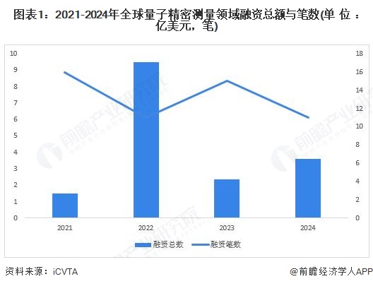 本文核心数据:量子精密测量市场融资总额与笔数;量子精密测量各技术路线融资笔数分布