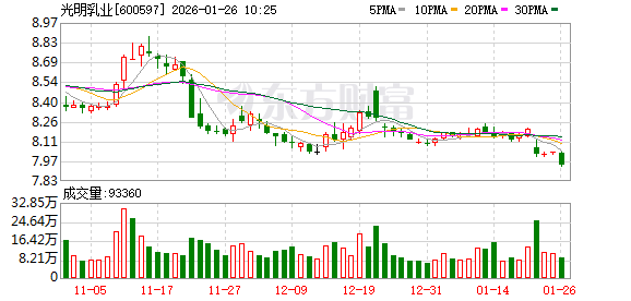 1月20日盘后,光明乳业公布2025年度业绩预亏公告,公司实现归属于母公司所有者的净利润为-1.8亿元到-1.2亿元,扣非后净利润同样亏损。