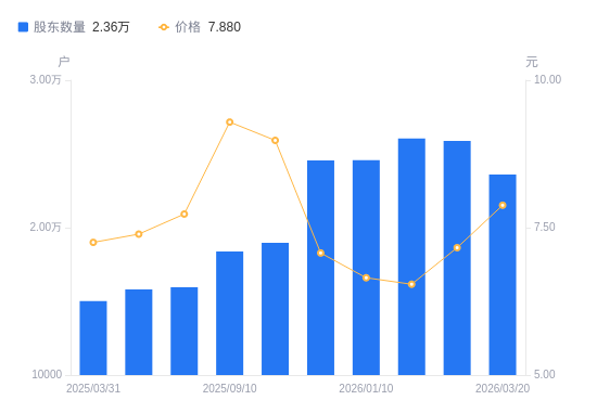 近一年(2025年3月20日至2026年3月20日),广汇物流A股股东户数从1.53万户,增加至2.36万户,增幅54.67%,区间股价上涨5.77%。