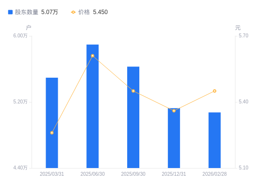 近一年(2024年12月31日至2025年12月31日),金枫酒业A股股东户数从6.13万户,减低至5.13万户,降幅16.45%,区间股价下跌3.25%。