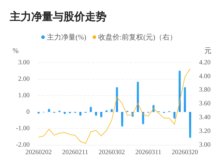 该股今日主力净量为负,且值较大,表明主力大幅流出,主动卖出明显多于主动买入。与此同时,今日换手率较高,主力抛售的嫌疑较大。投顾建议:投资者短期宜合理控制仓位,谨慎为佳。
