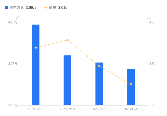 近一年(2025年3月31日至2026年3月31日),信达地产A股股东户数从4.45万户,减低至3.69万户,降幅17.17%,区间股价下跌29.51%。
