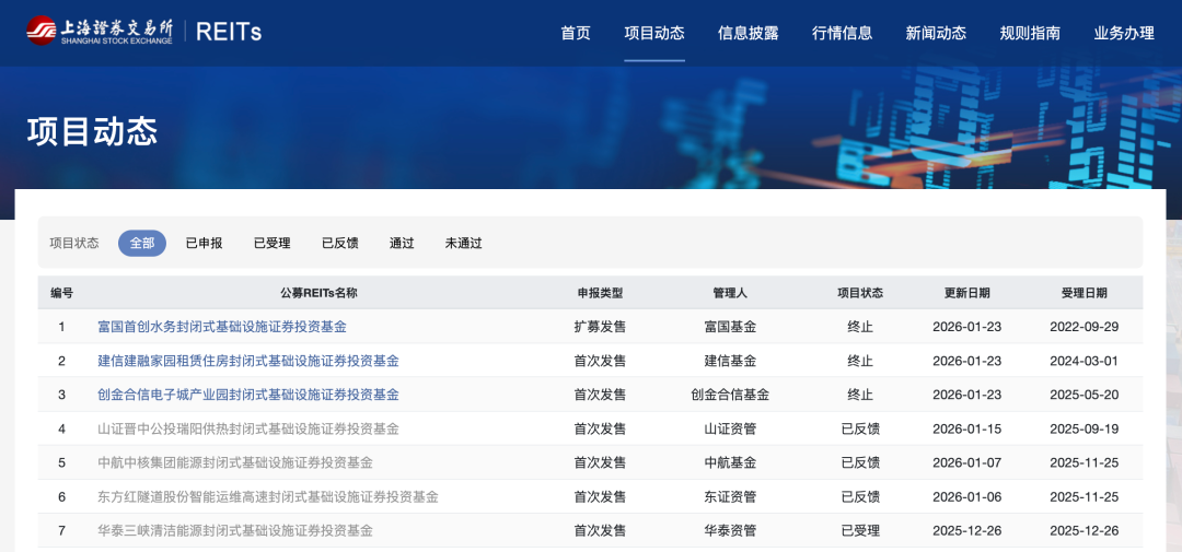 据沪深交易所官网消息,富国首创水务封闭式基础设施证券投资基金扩募发行、建信建融家园租赁住房封闭式基础设施证券投资基金、创金合信电子城产业园封闭式基础设施证券投资基金以及建信金风新能源封闭式基础设施证券投资基金、华夏万纬仓储物流封闭式基础设施证券投资基金终止或撤回发行。