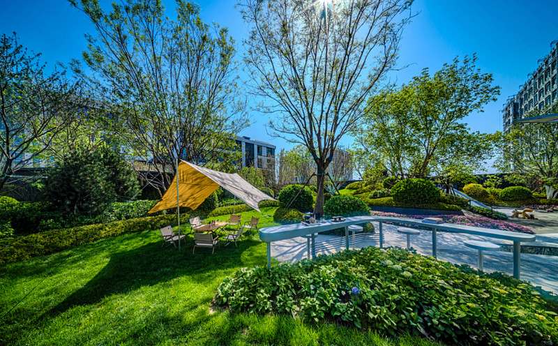 记者了解到,森与天成社区内外共有四层园林绿境,第一层为社区内约4.8万㎡的全龄化园林景观,第二层为社区南面车行入口八字线公园,组团式园林景观面积约1万㎡;第三层在北侧盖上,规划约9.2万㎡空中森林,第四层则为环绕在森与天成旁约17.5平方公里的南苑森林湿地公园,面积相当于约2.5个奥森公园,约5.8个朝阳公园。