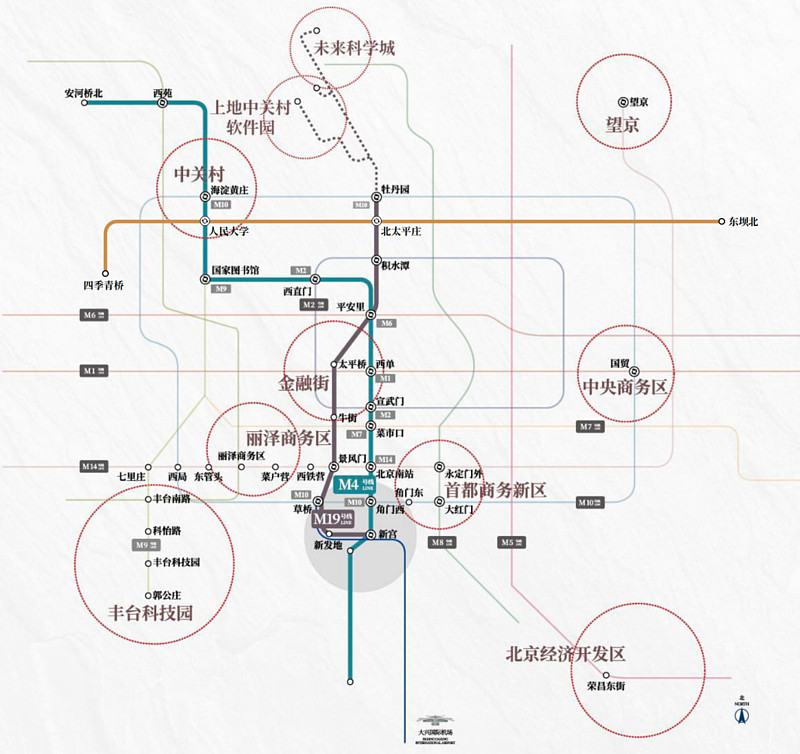 板块内部,与南四环最近的京投发展·森与天成项目,直线距离仅约1公里,是名副其实的四环价值红盘。项目距离新宫地铁站也仅约300米,借由地铁4号线、19号线两条南北纵贯线,高效联通海淀科技板块、西城金融板块,形成通达全城的先天便利优势。