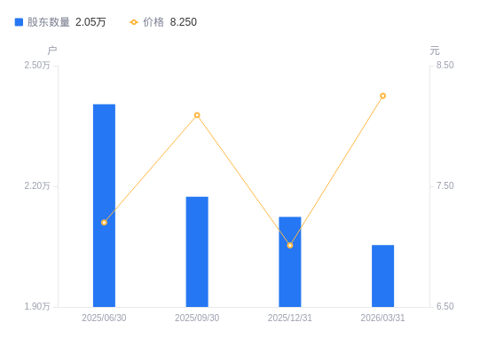 近一年(2024年12月31日至2025年12月31日),亚通股份A股股东户数从2.4万户,减低至2.12万户,降幅11.35%,区间股价下跌24.13%。