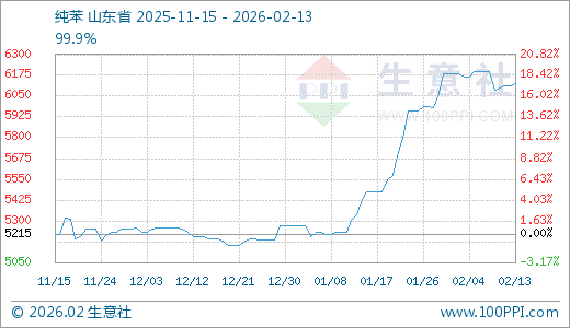 据生意社监测,纯苯02月13日最新价格6123.33元/吨,最近30天上涨12.77%,60天上涨17.96%。