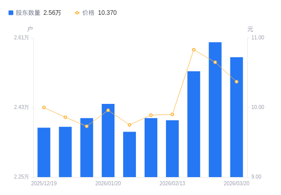 近一年(2025年3月20日至2026年3月20日),富维股份A股股东户数从3.02万户,减低至2.56万户,降幅15.18%,区间股价上涨16.78%。