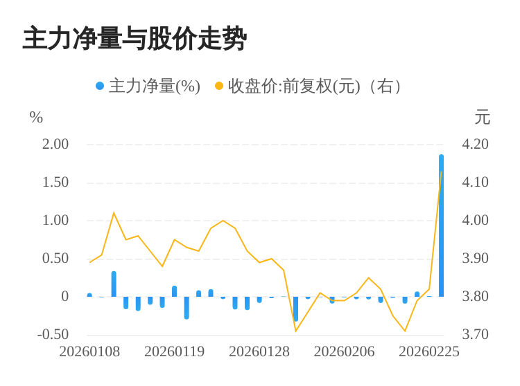 保税科技(600794)02月26日主力(dde大单净额)净流入9403.50万元,涨跌幅为8.12%,主力净量(dde大单净额/流通股)为1.87%,两市排名38/5190。