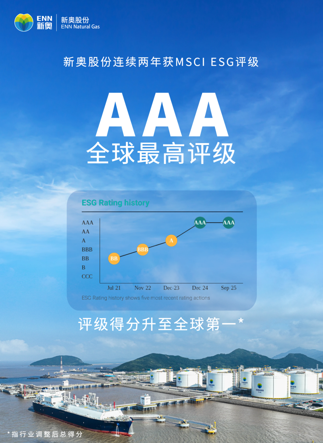 近日,国际权威指数公司MSCI(摩根士丹利资本国际公司,简称明晟)公布最新 ESG(环境、社会及管治)评级结果:新奥股份(600803)(600803.SH)再次获得全球最高级别“AAA”评级,行业调整后得分在燃气公用事业板块跃居全球首位。这是自去年成为中国公用事业行业首家获此评级企业以来,新奥股份连续第二年蝉联“AAA”,实现从“中国领跑”迈向“全球引领”的重要突破。