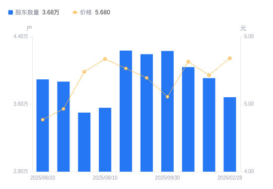 近一年(2024年12月31日至2025年12月31日),悦达投资A股股东户数从3.6万户,增加至3.91万户,增幅8.65%,区间股价上涨22.85%。