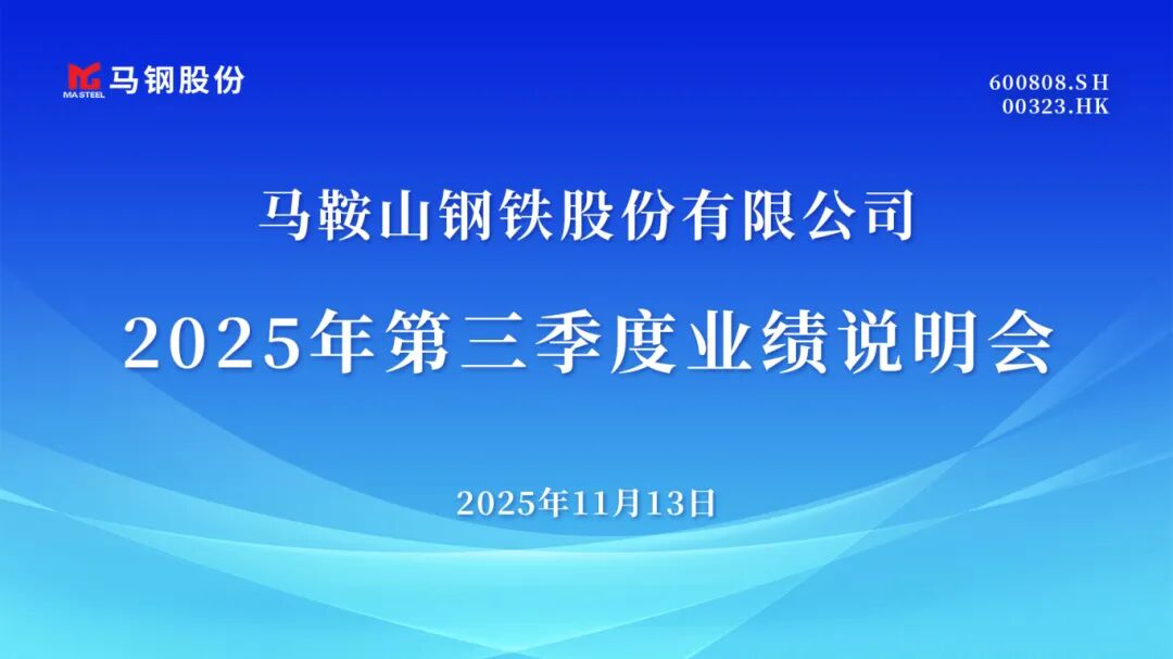 马鞍山钢铁股份有限公司已于2025年10月30日(星期四)在上海证券交易所网站(www.sse.com.cn)披露本公司2025年第三季度报告。为了便于广大投资者更全面深入地了解本公司2025年前三季度业绩和经营情况,本公司拟于2025年11月13日(星期四)15:30-17:00召开业绩说明会,就投资者普遍关心的问题进行交流,欢迎您的关注。