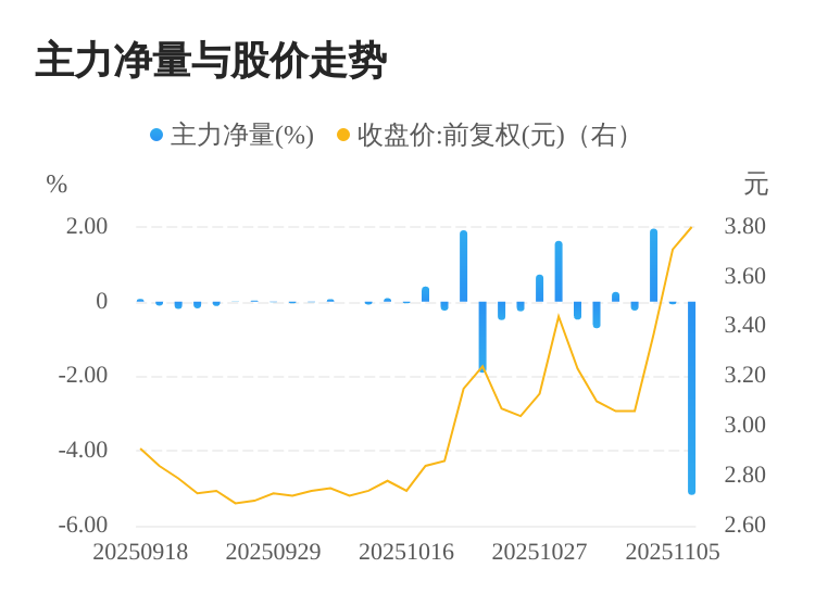 厦工股份(600815)11月06日主力(dde大单净额)净流出3.58亿元,涨跌幅为2.43%,主力净量(dde大单净额/流通股)为-5.18%,两市排名5160/5166。