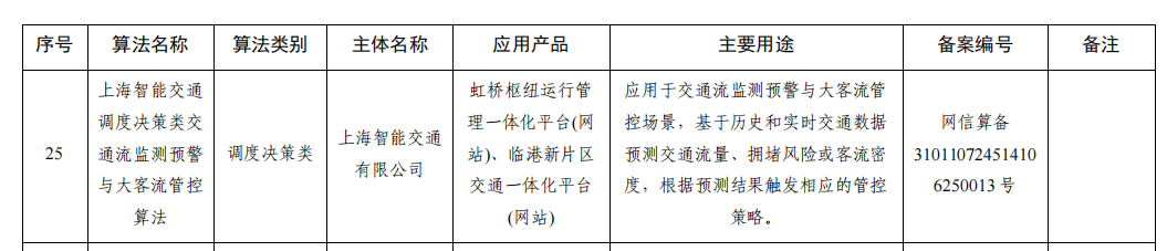 近日,隧道股份(600820)数字集团自主研发的“交通流监测预警与大客流管控算法”正式获得国家互联网信息服务算法备案,成为城市交通综合治理领域首个通过国家级合规认证的调度决策类算法。