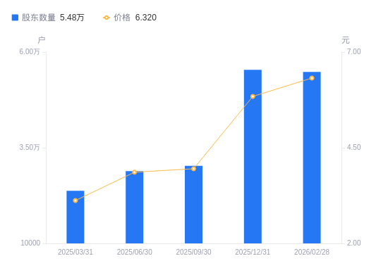 近一年(2024年12月31日至2025年12月31日),茂业商业A股股东户数从3.09万户,增加至5.53万户,增幅79.15%,区间股价上涨34.87%。