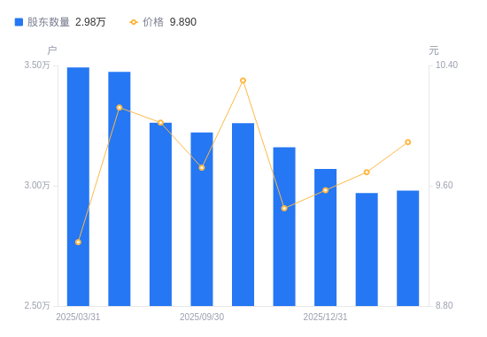 近一年(2025年2月28日至2026年2月27日),香溢融通A股股东户数从3.38万户,减低至2.98万户,降幅11.94%,区间股价上涨4.05%。