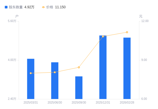 近一年(2024年12月31日至2025年12月31日),上海九百A股股东户数从5.23万户,减低至5.01万户,降幅4.24%,区间股价上涨11.92%。