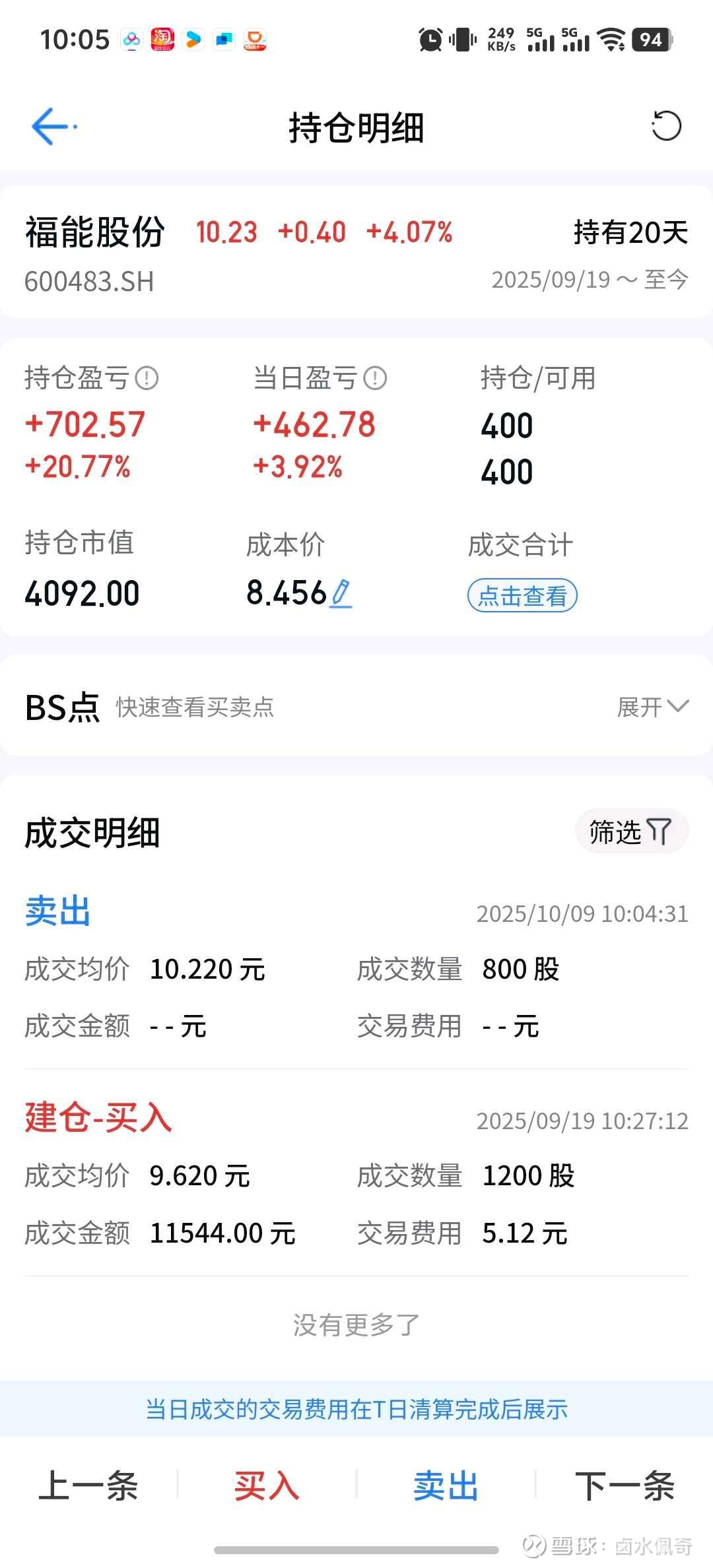 卖掉800股剩400股做一手党。按400股计算目前浮盈20%