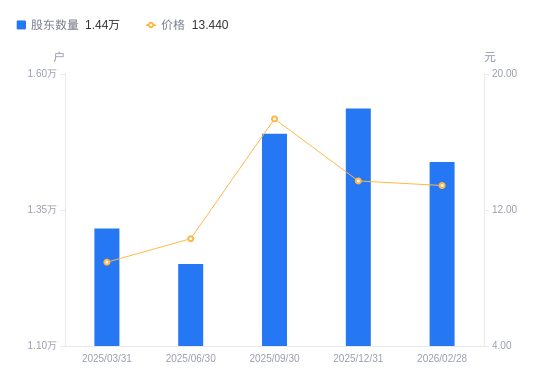 3月30日消息,数据显示,截至2025年12月31日,宁波中百A股股东总户数为1.54万户,较上期(2025年9月30日)增加465户,增幅3.12%。公司最新A股总股本为2.24亿股,其中流通A股2.24亿股,户均持有流通A股数量为1.46万股,较上期减少455.62股,降幅3.03%;户均持流通A股市值20.02万元,较上期减少6.12万元,降幅23.42%。