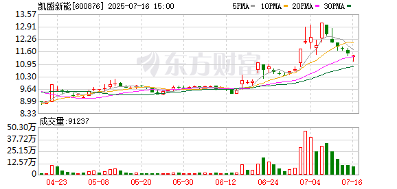 截至7月16日早盘,凯盛新能的股价11.33元/股,总市值73.15亿元。