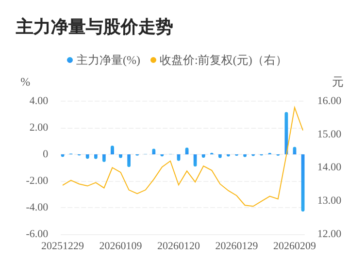 杉杉股份(600884)02月10日主力(dde大单净额)净流出12.30亿元,涨跌幅为-4.36%,主力净量(dde大单净额/流通股)为-4.30%,两市排名5184/5189。