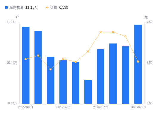 近一年(2025年2月28日至2026年2月10日),华安证券A股股东户数从12.36万户,减低至11.15万户,降幅9.77%,区间股价上涨15.17%。
