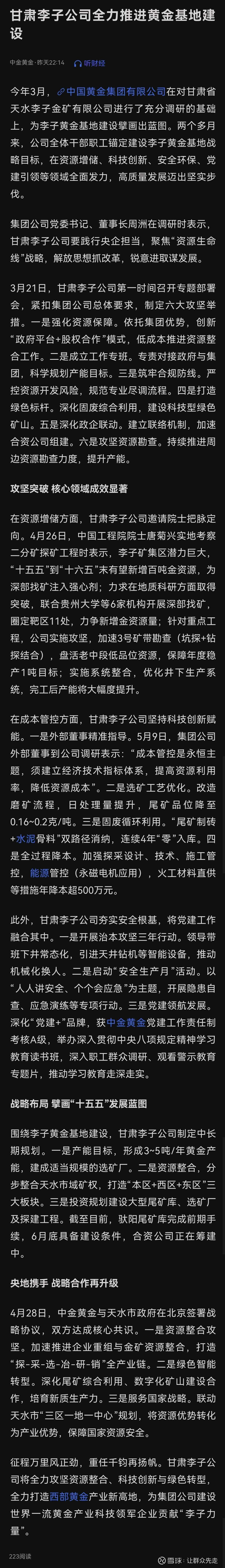 : 集团官微以前有文章,发出1小时把关键数据删了,保密是中国黄金集团的习惯。