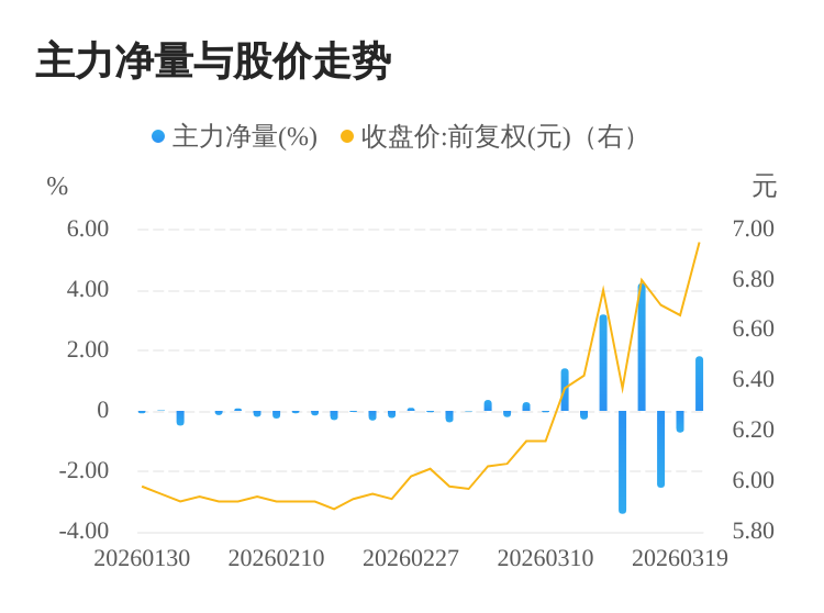 华电新能(600930)03月20日主力(dde大单净额)净流入4.10亿元,涨跌幅为4.35%,主力净量(dde大单净额/流通股)为1.81%,两市排名28/5191。