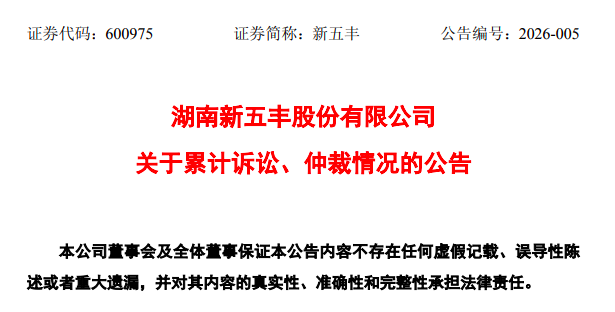 新五丰表示,本次披露涉及的诉讼、仲裁案件部分尚未判决或结案,公司正在积极协商和解或处于诉讼、仲裁过程中,对公司本期利润或期后利润的影响存在不确定性。公司将依据有关会计准则的要求和案件进展情况进行相应的会计处理,最终会计处理及对公司利润的影响数据将以审计机构年度审计确认后的结果为准。