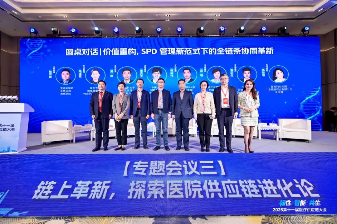 11月22日,福高公司总经理杨琼珊女士受邀出席大会,并作为企业代表,参与了《价值重构,SPD管理新范式下的全链条协同革新》主题对话环节。她与多位医疗机构权威专家就“SPD运营商如何更精准、更深入地赋能”进行了深度探讨,为行