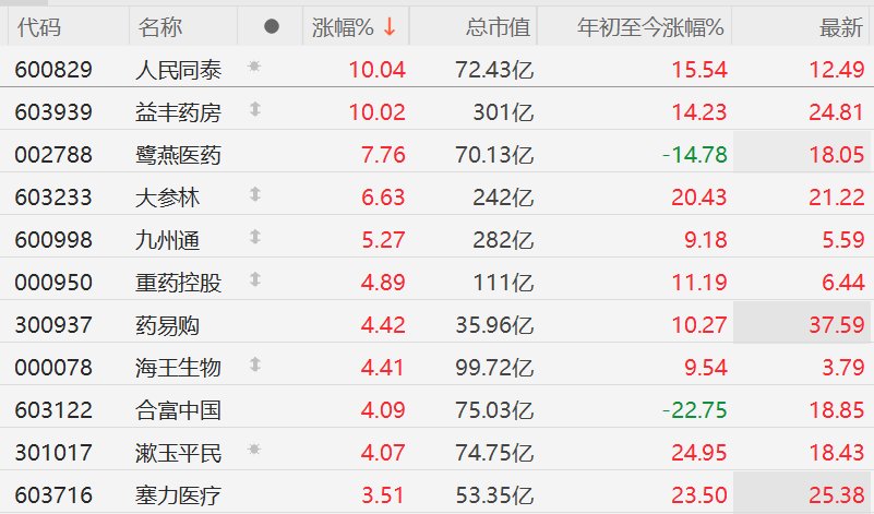 格隆汇1月23日|A股市场医药商业股集体上涨,其中,人民同泰、益丰药房涨停,鹭燕医药涨超7%,大参林涨超6%,九州通涨超5%,重药控股、药易购、海王生物、合富中国、漱玉平民涨超4%。