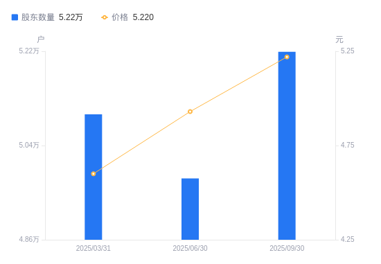3月19日消息,数据显示,截至2025年12月31日,晋亿实业A股股东总户数为5.1万户,较上期(2025年9月30日)减少1216户,降幅2.33%。公司最新A股总股本为9.54亿股,其中流通A股9.54亿股,户均持有流通A股数量为1.87万股,较上期增加436.24股,增幅2.39%;户均持流通A股市值9.62万元,较上期增加779.3元,增幅0.82%。