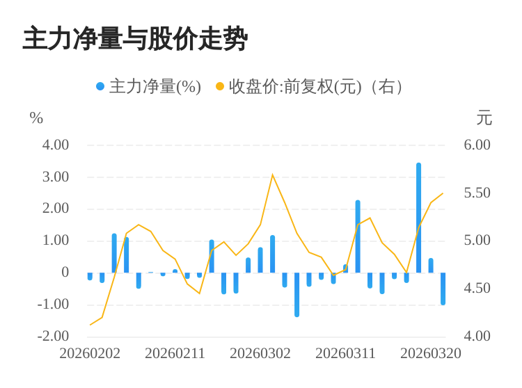 该股今日主力净量为负,且值较大,表明主力大幅流出,主动卖出明显多于主动买入。与此同时,今日换手率较高,主力抛售的嫌疑较大。投顾建议:投资者短期宜合理控制仓位,谨慎为佳。