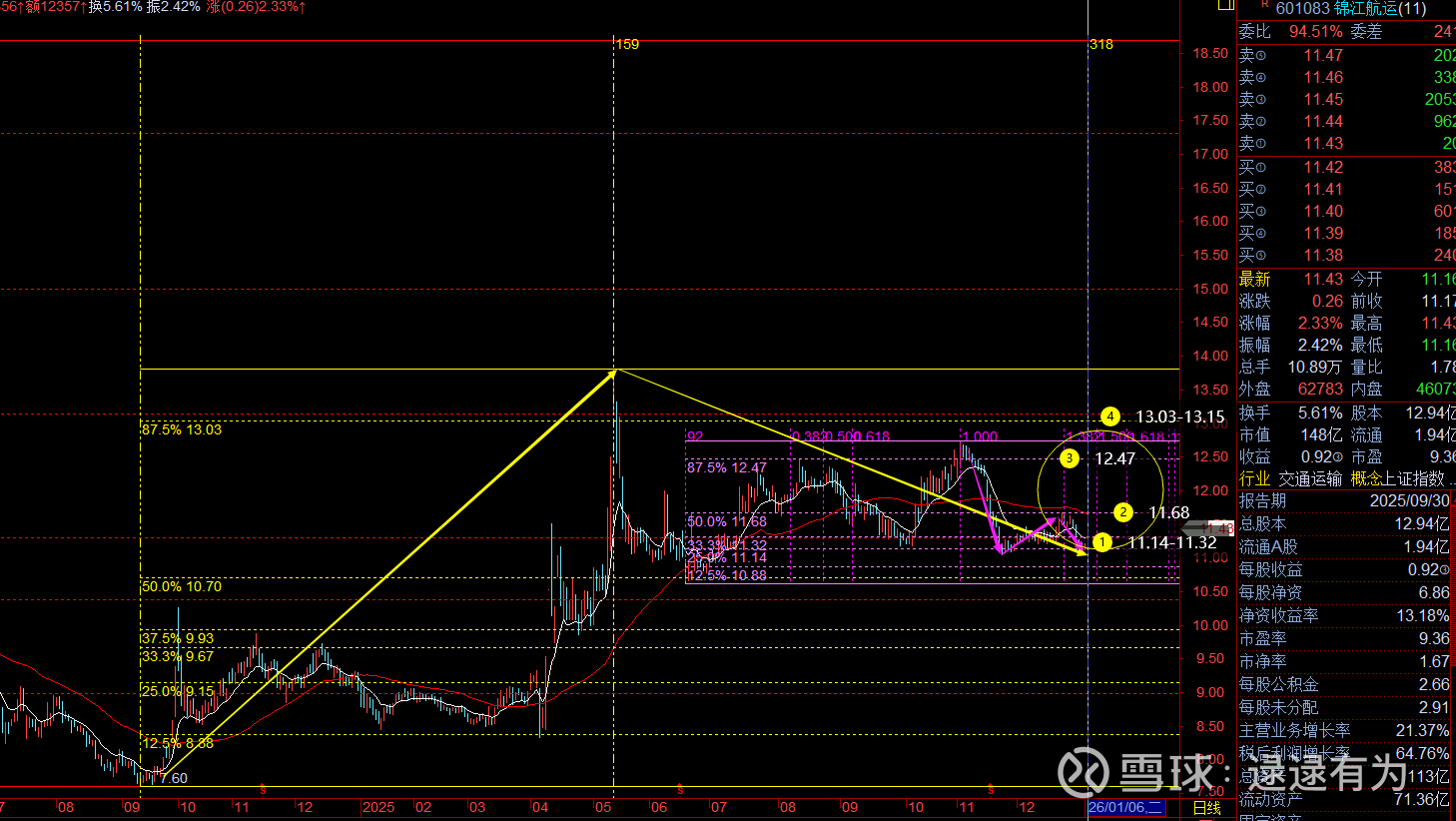 : 11.68突破了,小级别的半分位,支撑11.3-11.68,短压12.47、13.1附近。