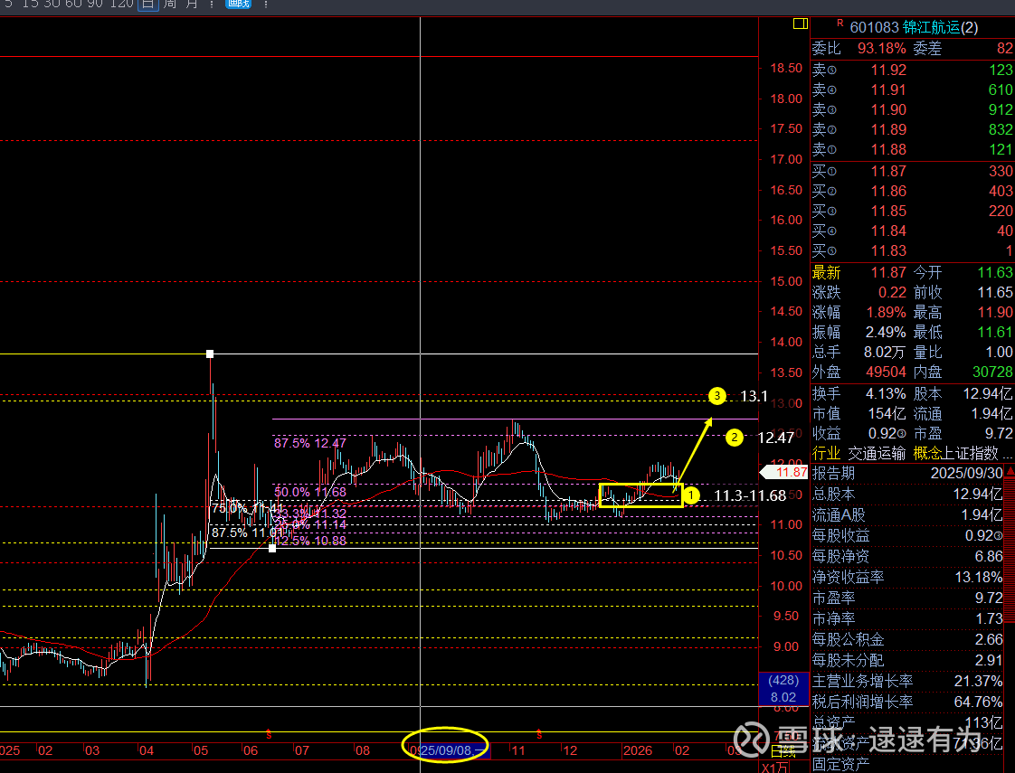 1、筹码:日周月筹码集中的11.6元,强支撑。2、本人自研的动能趋向指标:为31.4度↑,比昨日升3度。31.4度处于3区:低温弱势区(20--38)度。底部形成,值得关注。如果量价配合,则继续升温上涨。知顶底知进出!!