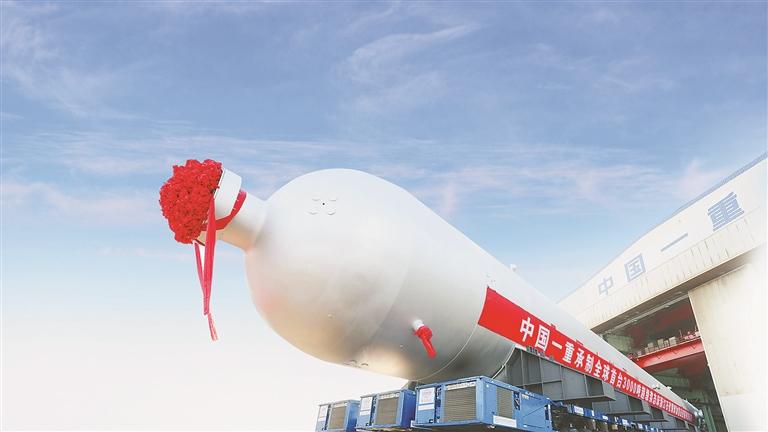 中国一重承制全球首台3000吨超级浆态床浙江石化锻焊加氢反应器。