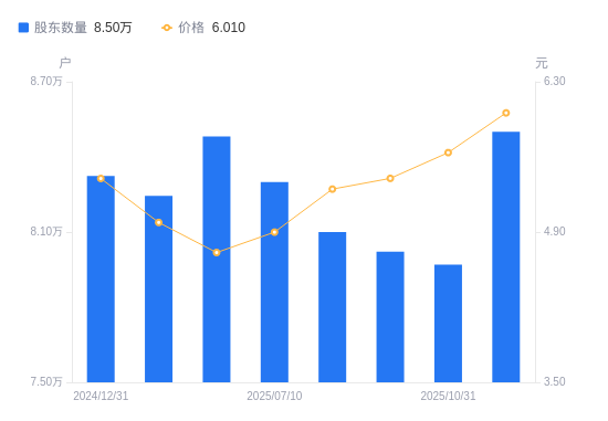 近一年(2024年12月31日至2025年11月20日),海南橡胶A股股东户数从8.32万户,增加至8.5万户,增幅2.11%,区间股价上涨9.49%。