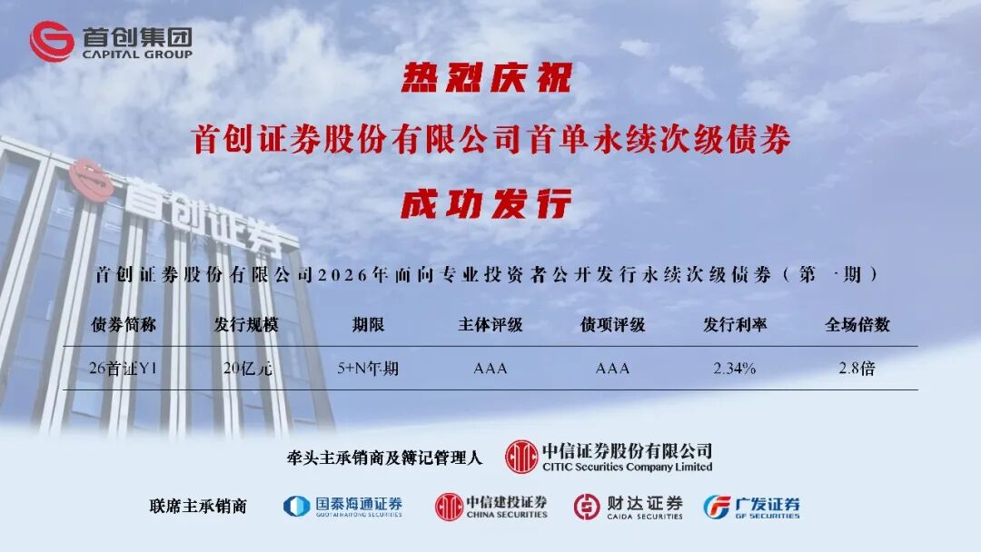近日,首创证券2026年面向专业投资者公开发行永续次级债券(第一期)成功簿记发行,彰显了首都金融国企的稳健实力与市场影响力。