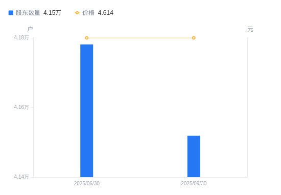 近一年(2025年3月31日至2026年3月31日),重庆水务A股股东户数从4.14万户,增加至4.17万户,增幅0.67%,区间股价下跌3.27%。