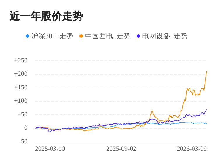 03月09日,中国西电(601179)股价继续上涨。截至今日收盘,中国西电上涨4.51%,收盘价为20.17元,盘中股价最高触及20.61元,股价创历史新高。