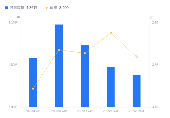 3月31日消息,数据显示,截至2025年12月31日,龙江交通A股股东总户数为4.47万户,较上期(2025年9月30日)减少3146户,降幅6.57%。公司最新A股总股本为13.05亿股,其中流通A股13.05亿股,户均持有流通A股数量为2.92万股,较上期增加1700.81股,增幅6.19%;户均持流通A股市值10.33万元,较上期增加9319.42元,增幅9.91%。