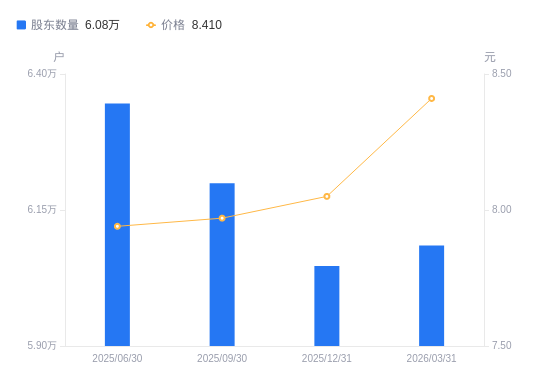近一年(2024年12月31日至2025年12月31日),上海环境A股股东户数从6.6万户,减低至6.05万户,降幅8.44%,区间股价下跌2.19%。
