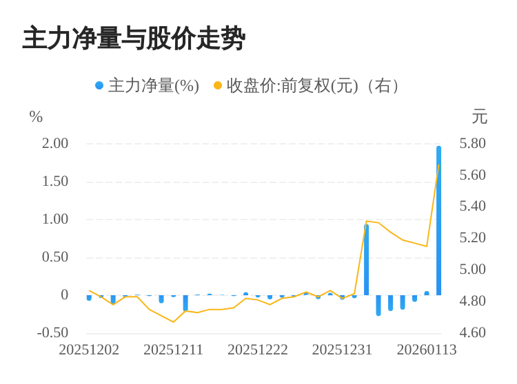 君正集团(601216)01月14日主力(dde大单净额)净流入9.35亿元,涨跌幅为10.10%,主力净量(dde大单净额/流通股)为1.98%,两市排名66/5183。