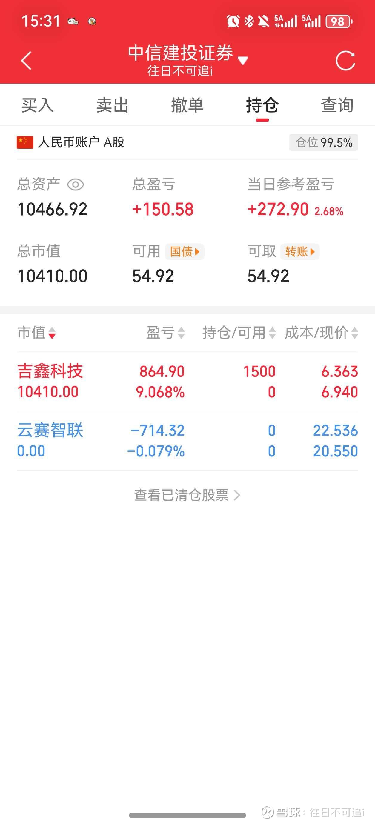 买入吉鑫科技,卖出云赛,有时候真想给自己两巴掌,太菜了