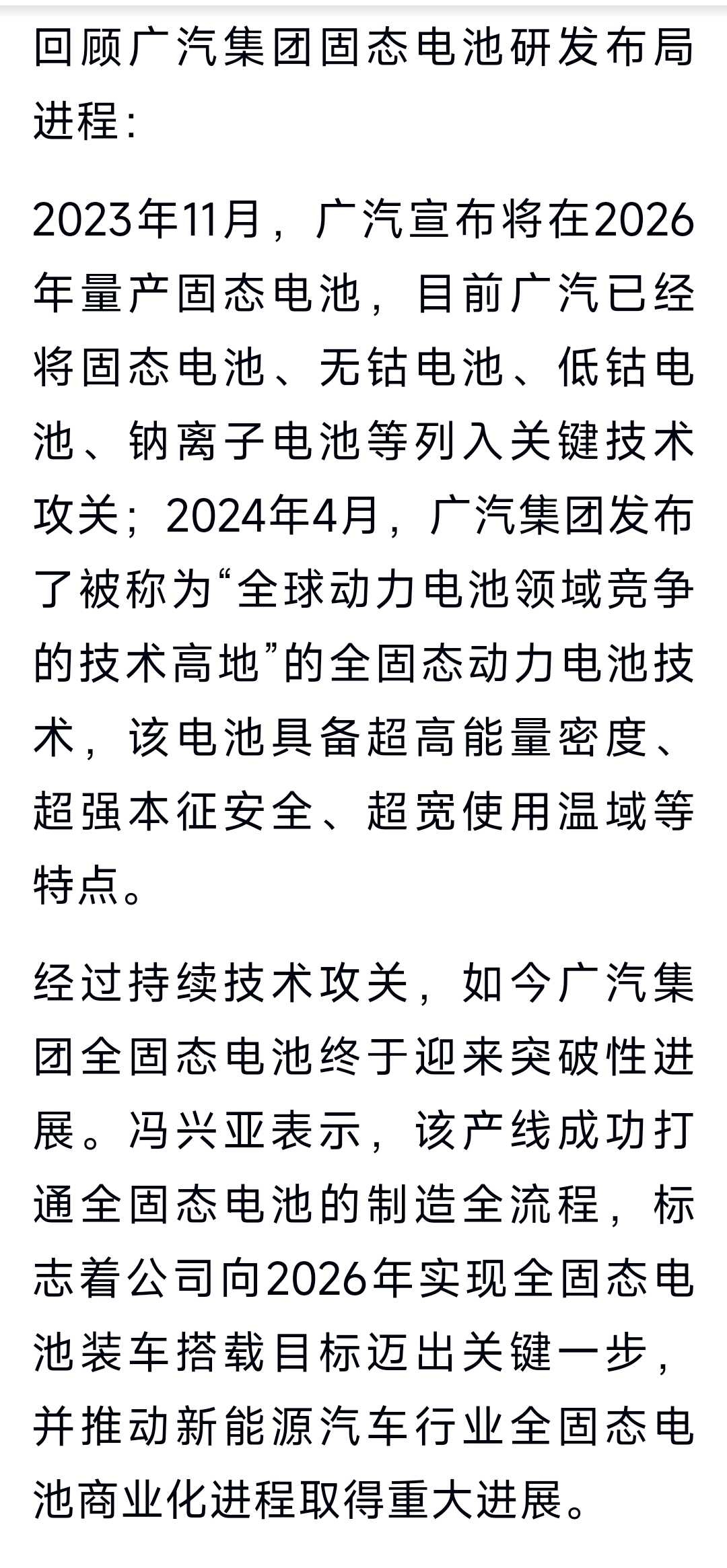 广汽集团计划2026年全固态电池可以进行小批量的装车实验,大家觉得靠谱吗?