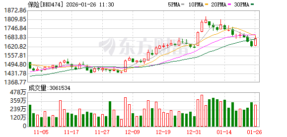 1月26日早盘,大金融整体强势,其中保险股领涨,新华保险涨超4%,中国太保、中国人寿涨超3%,中国人保涨超2%,中国平安涨超1%。