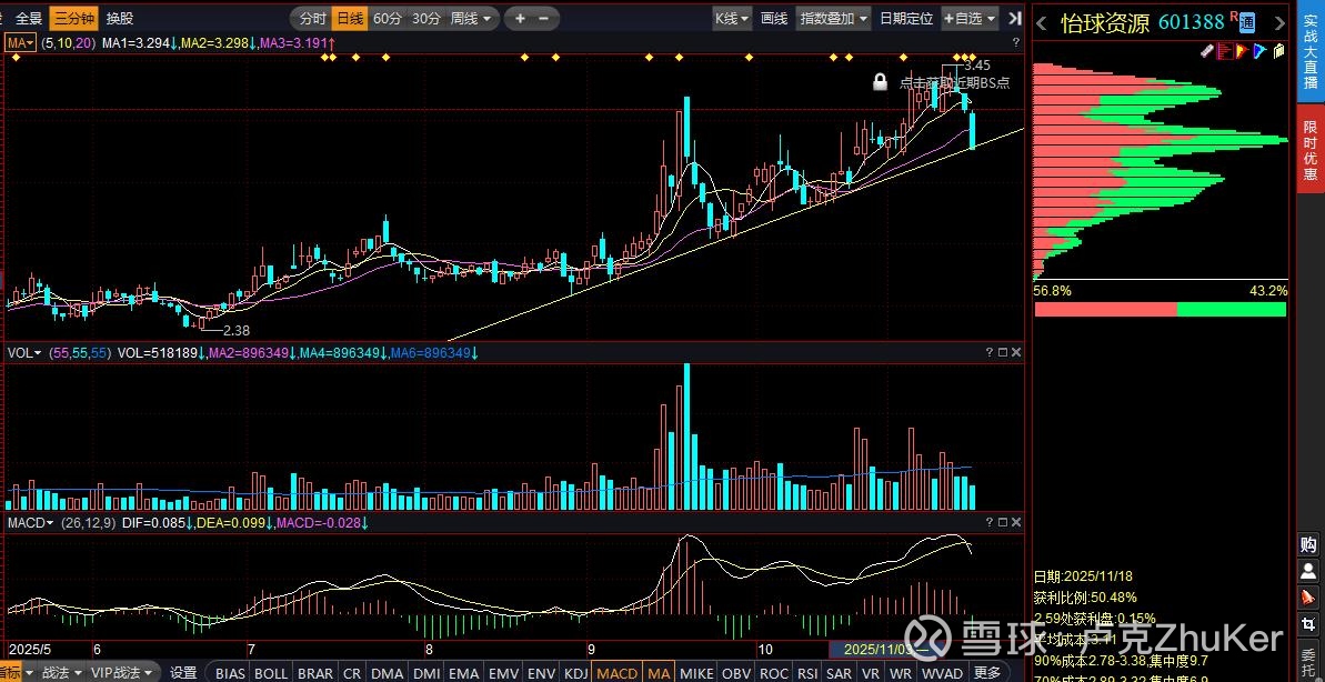 : 怡球资源针对原有趋势线的回踩,这个位置是加仓而不是卖出