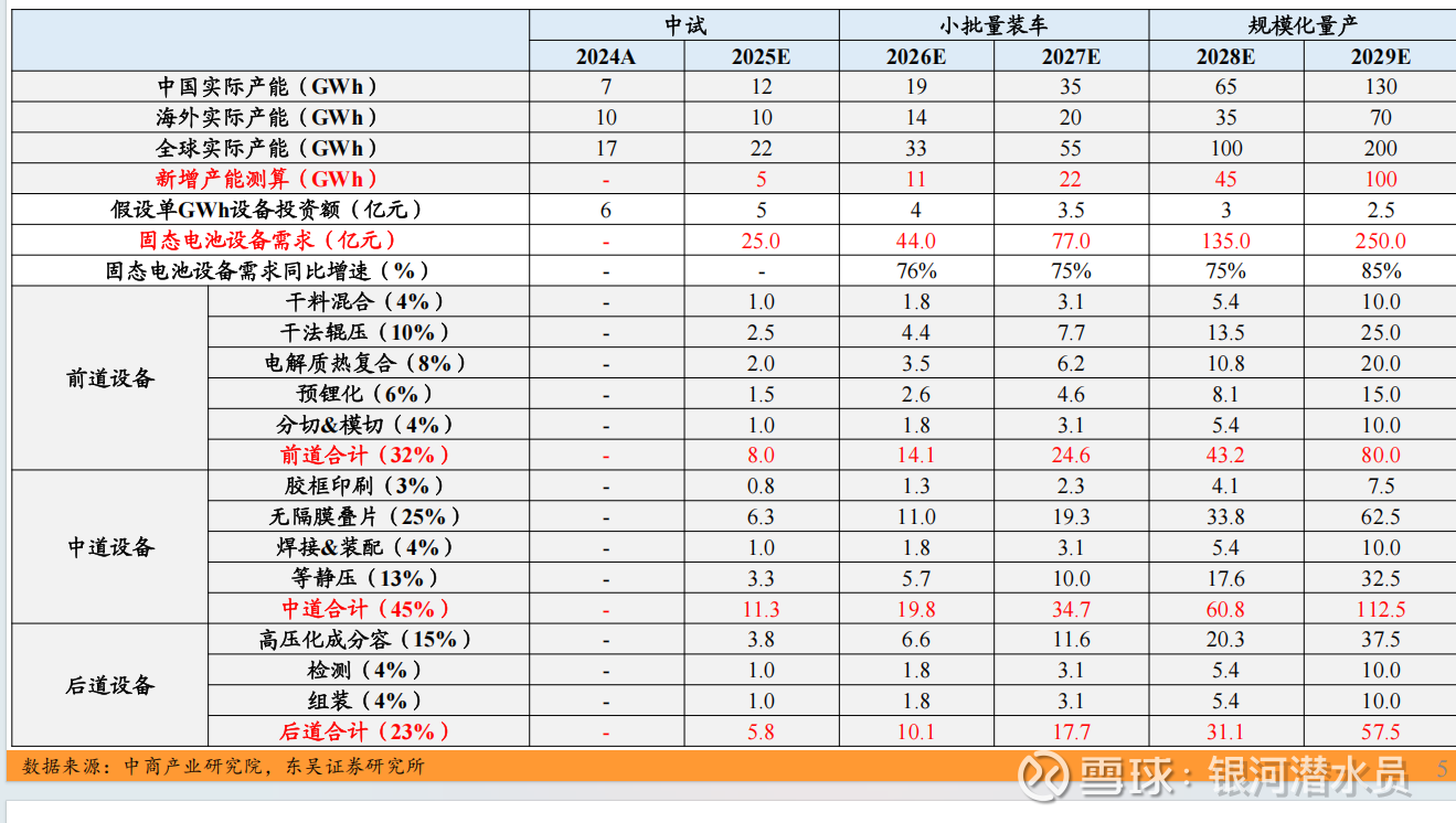 东吴证券2025年11月22日报告,对固态电池设备未来的市场空间预测