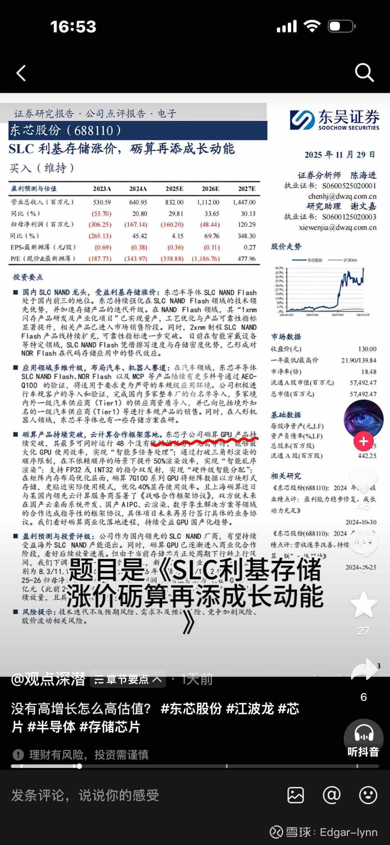 $东芯股份(SH688110)$